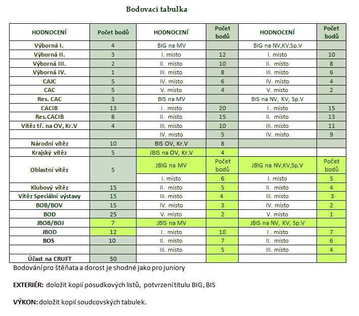 Do soutěže se započítávají výsledky ze závěrečných soutěží „Chovatelská stanice“ na